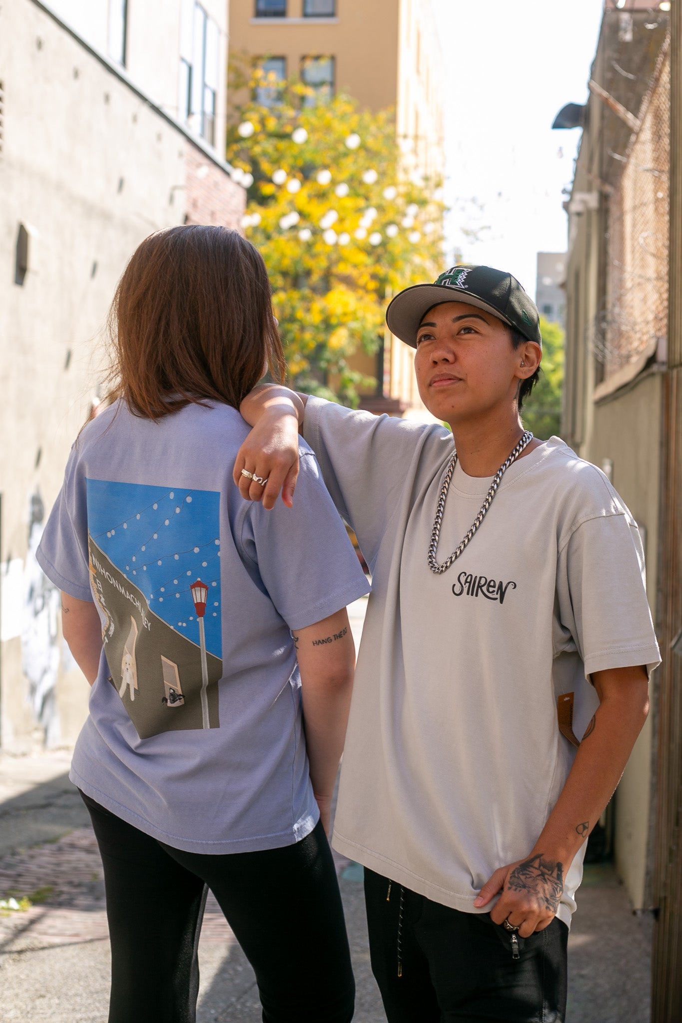 The Sairen Nihonmachi Tee features Seattle's iconic Nihonmachi alley with the addition of our furry shop friends. Back in stock in three new colors!