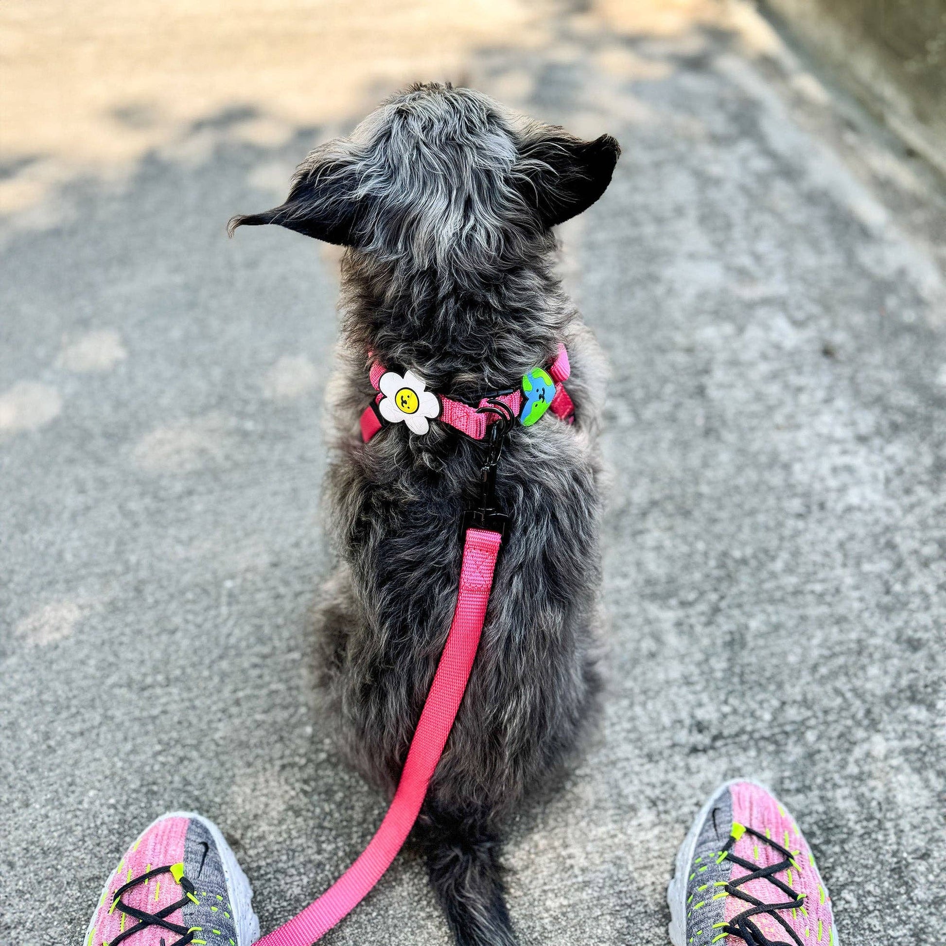 Brighten up your dog's harness, collar, and leash with the adorable Daisy Dog Jiby, featuring the Jiby smiley. Stretch and slide this silicone Jiby onto your dog's collar, harness, or leash to spread extra joy wherever you go with your doggos!
