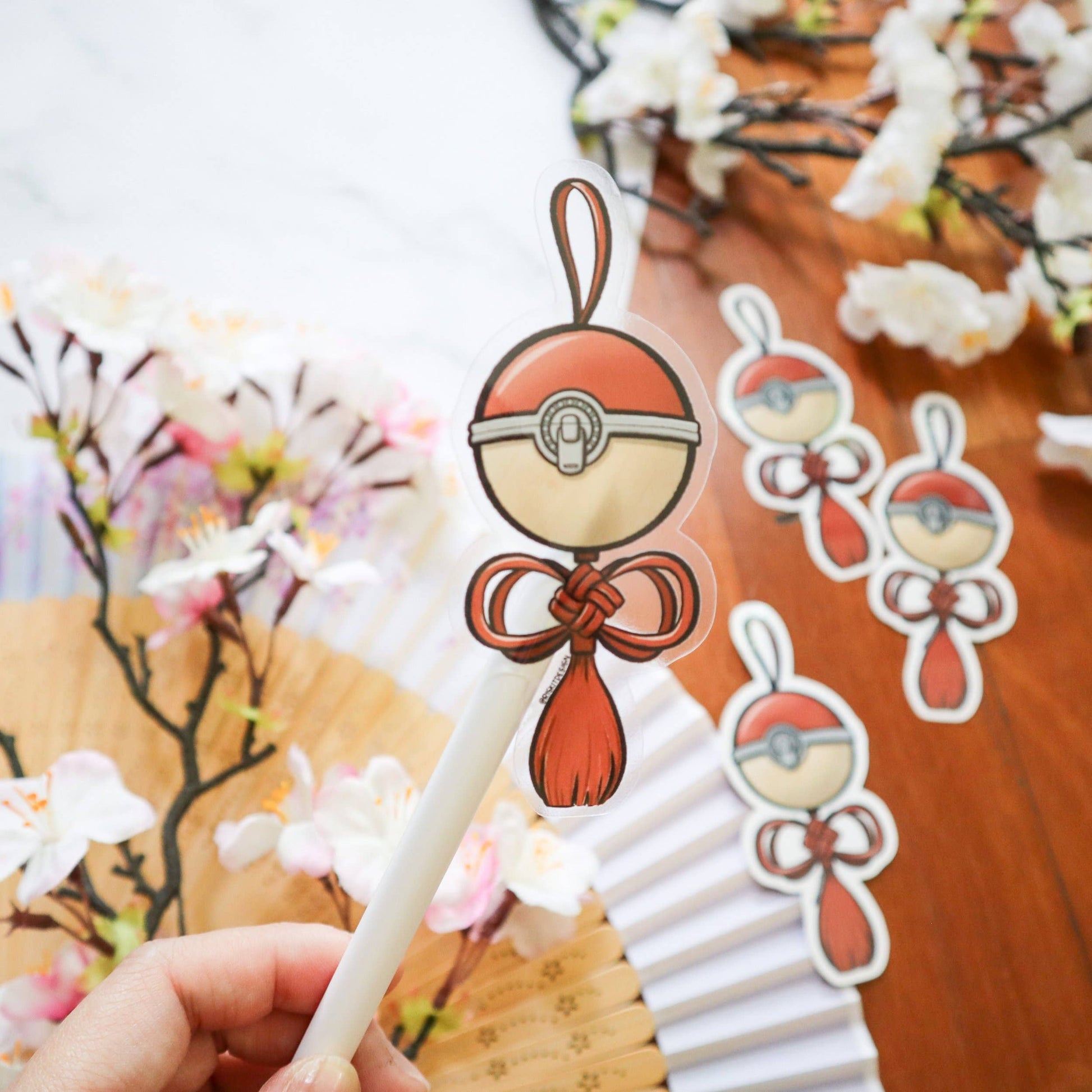 Inspired by Japanese netsuke and omamori nots with a nostalgic twist. Sticker is made of weatherproof vinyl and is 1.6” x 4” in size.