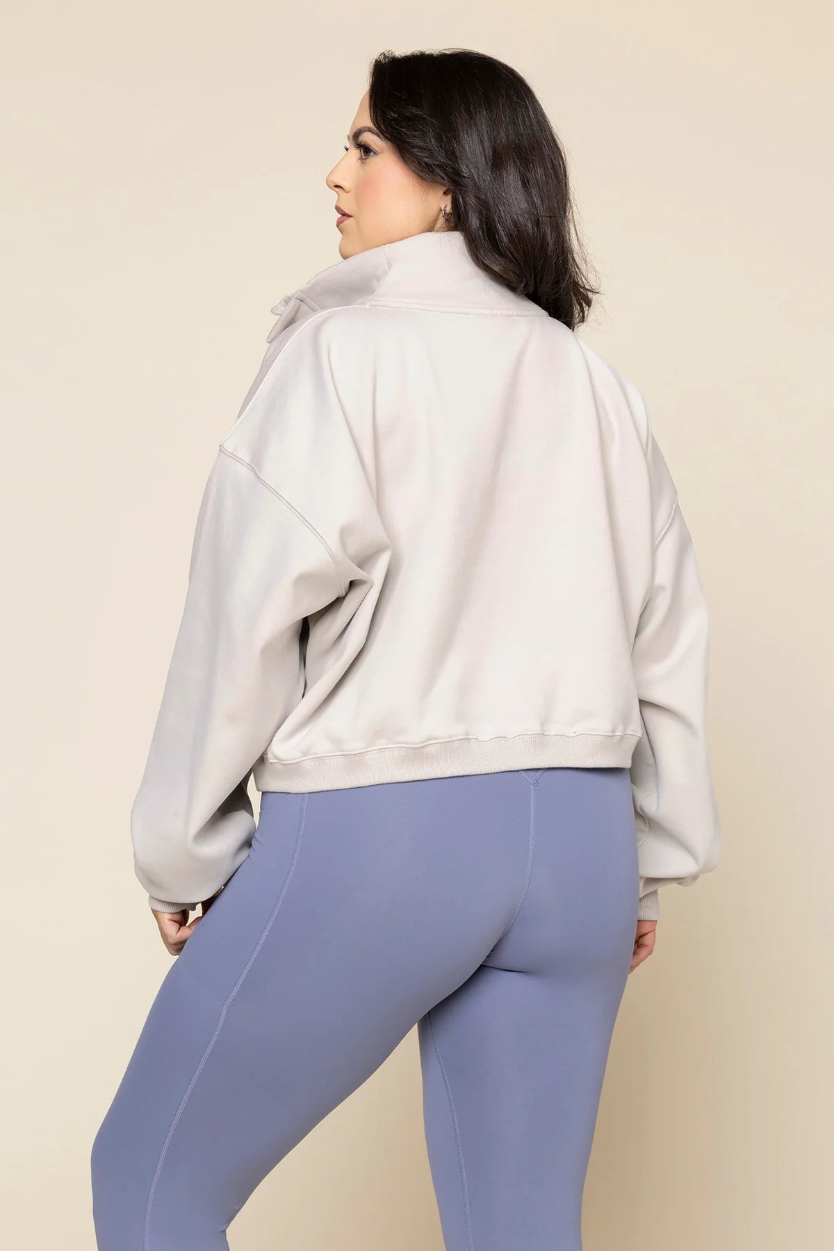 Designed in the softest ooey gooey fabric, this ultra-soft cropped half zip ensures that comfort is just one zip away.