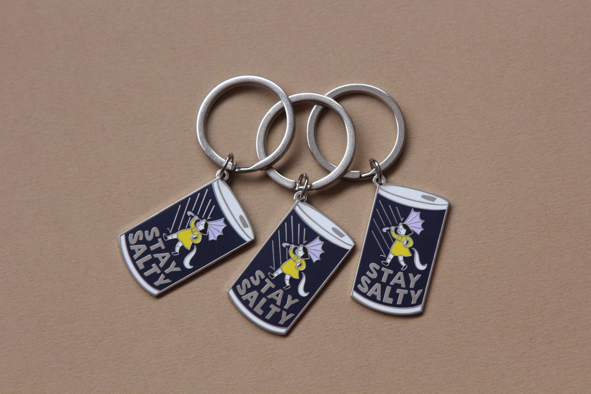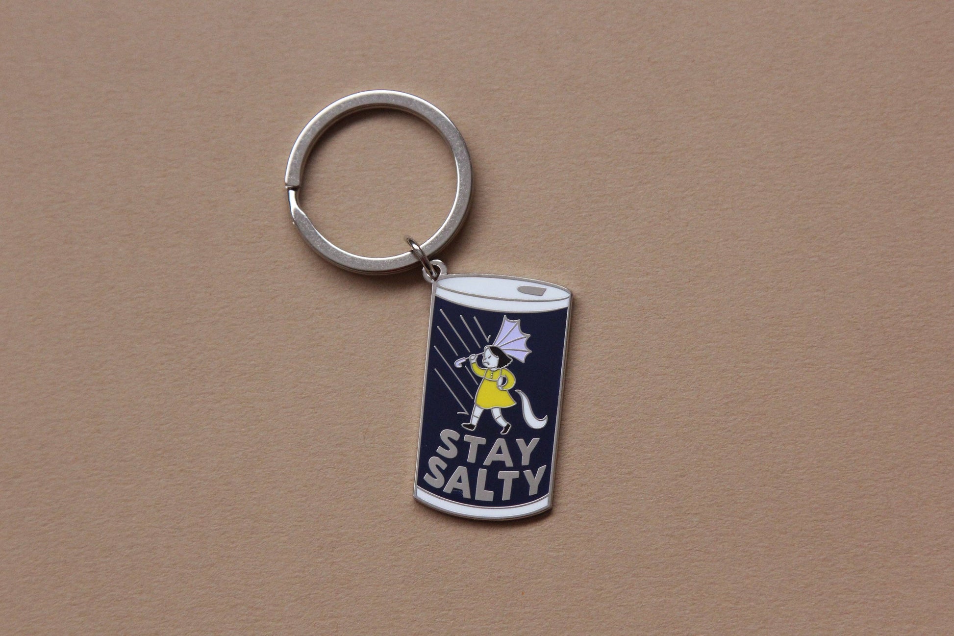 Staying salty is all about having a bad day and making sure everyone around you knows about it. These grumpy salt girl enamel keychains are perfect for sharing your grump.
