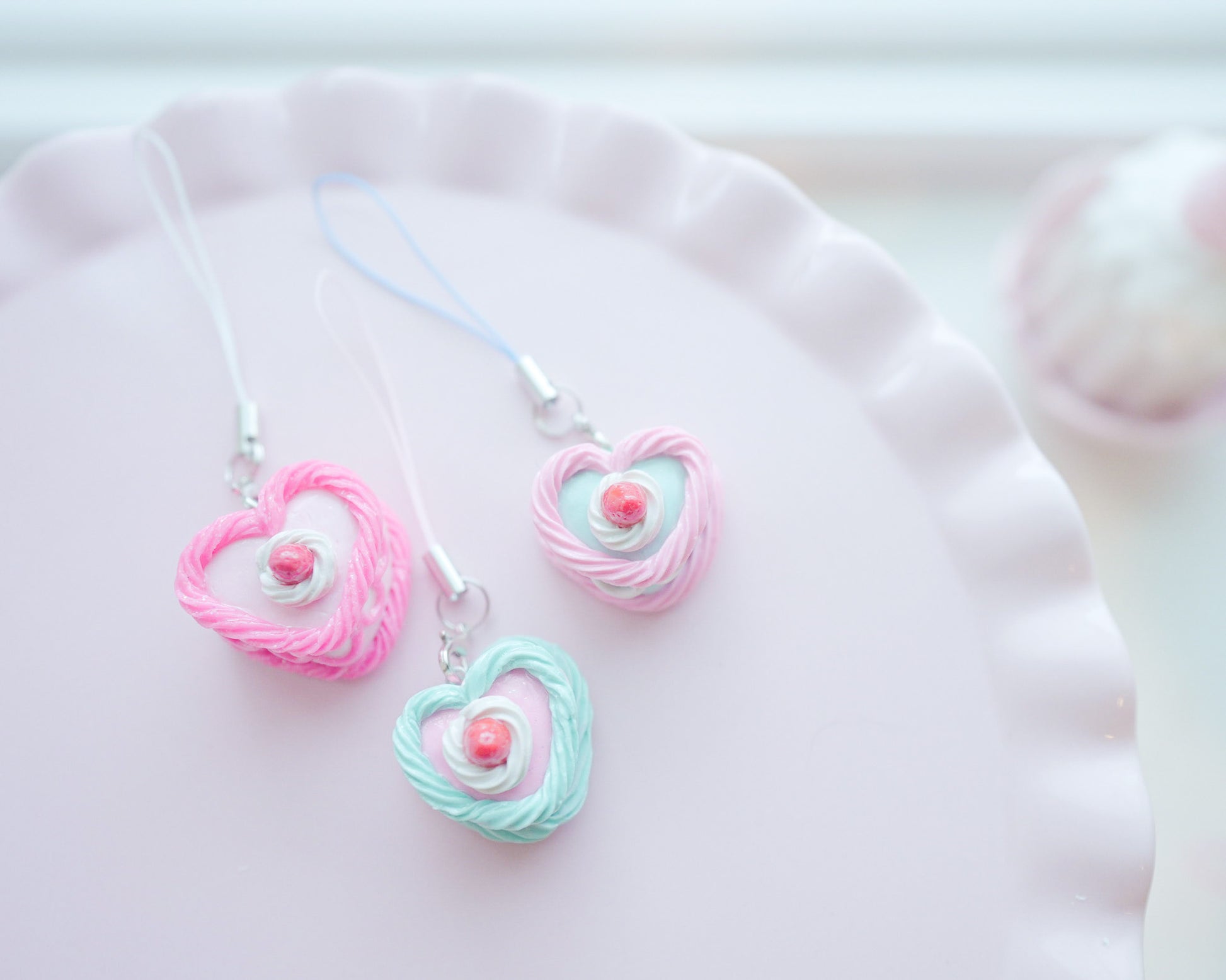 All the pieces are handmade by our in-house brand Morning Siren with polymer clay and coated in resin. Stainless steel hook and lobster claw to hang. Each one is unique!