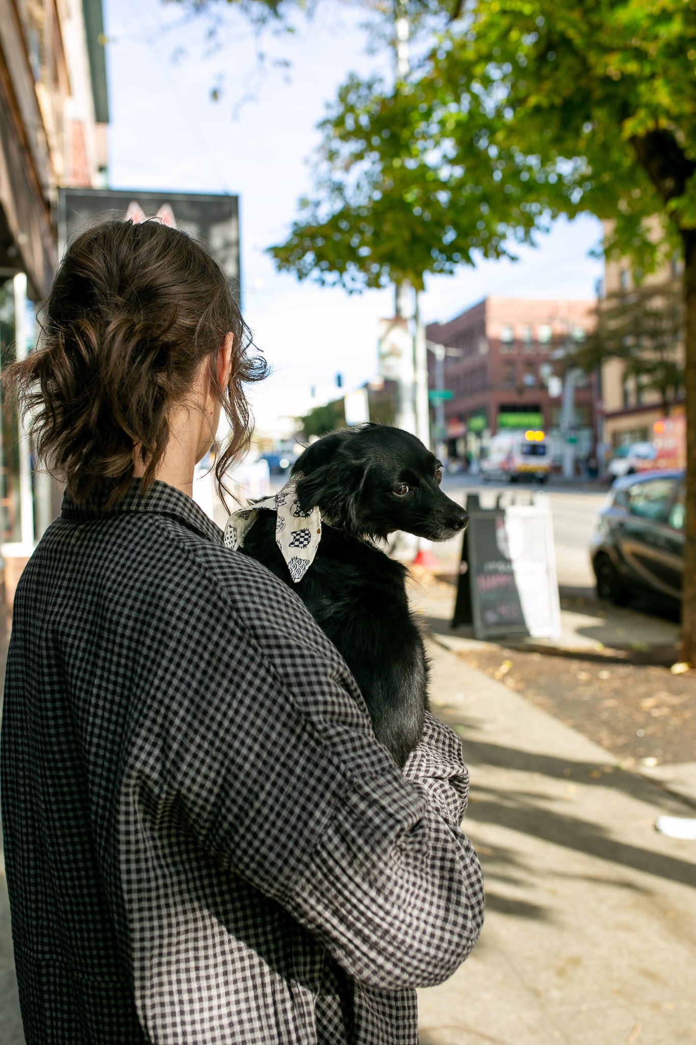 - Kimiko (black chihuahua) wearing size XS bandana. Neck size 8”, 10 lbs.
